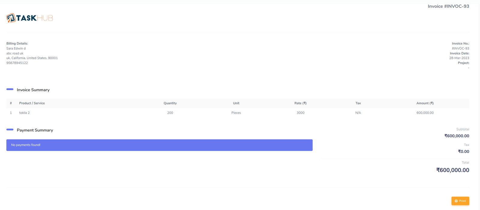 It provides basic information about task also you can filter tasks by project, status, due date, clients and users. you can see detailed information of particular task by clicking view button.